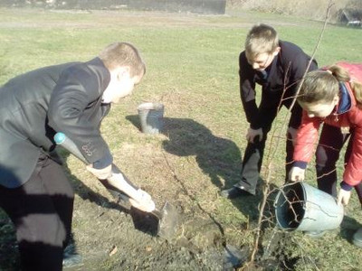 23 квітня учні 7 класу дали старт акції "Посади деревце!" Планується висадити на території школи кущі калини та берізки.