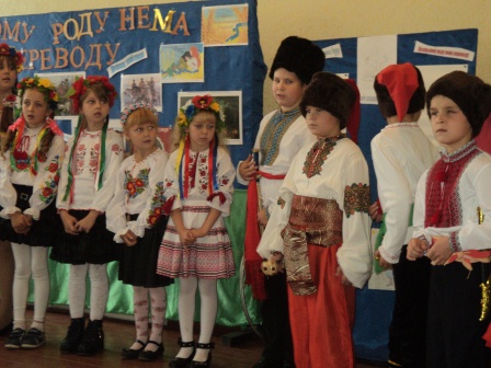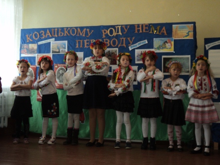 13 жовтня у переддень Дня захисника України та Дня козацтва у школі пройшло свято" Козацькому роду нема переводу". Молодші школярі підготували виставу з піснями, віршами та танцями, а старші підготували гру. Змагалося 2 курені хлопців. Їм довелося пройти випробування "Кашовари", "Рибалки", "Втеча з полону", "Художники" та ін.