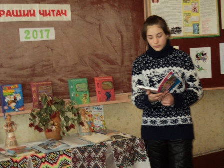 27 лютого у школі пройшов конкурс на кращого читача. Бібліотекар сільської бібліотеки Купріянова В. В. спочатку познайомила школярів з бібліотечними новинками, а потім підсумувала результати читацького конкурсу. Переможцями стали учениця 6 класу Ігнатенко Катя та учениця 7 класу Янигіна Ліза. Вони отримали грамоти та цінні подарунки