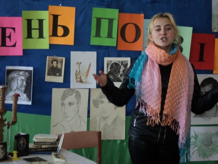 21 березня в школі до Всесвітнього дня поезії вчителем зарубіжної літератури Солодовник Л. В. проведено захід "Поетична свічка". Учні розповідали вірші відомих класиків літератури, розширили свої знання про їх життєвий та творчий шлях.