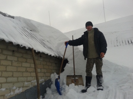 Цієї зими випало снігу аж занадто багато. І це спричинило достатньо багато проблем для мешканців села. Заметені дороги техніка ледве встигала його прибирати, але все ж ця проблема вирішувалась . Складніше було школі. Сніговий килим на даху важко тиснув. Щоб не допустити аварійної ситуації вчитель фізичної культури Линник С. М. організував прибирання снігу з даху школи. Колишній випускник Сіренко Вадим відгукнувся на прохання допомогти у вирішенні цього питання. І от купа снігу вже на землі, а даху школи тепер нічого не загрожує. Дякуємо щиро!!!